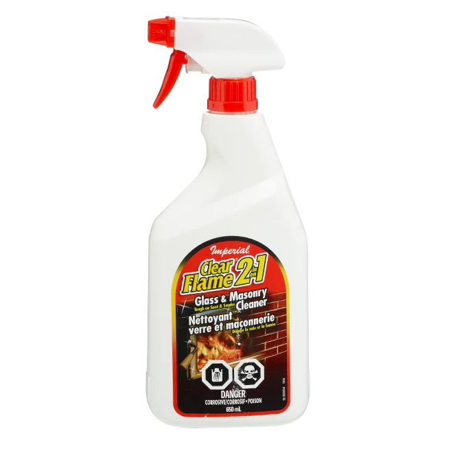 This 2-in-1 Imperial glass and masonry cleaner is formulated to remove soot, smoke and creosote stains. It is conceived for use on glass doors, gas logs, fireplaces and masonry surfaces. It clings well for deeper, faster, more thorough cleaning. It features an improved spray trigger for ease of application and child safety, and is specially thickened to cling to vertical surfaces.