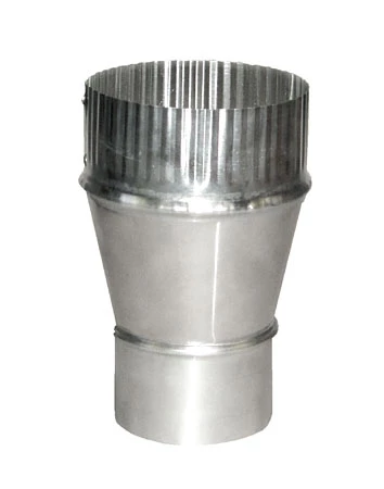 The Imperial 3″ to 4″ diameter aluminum reducer for ventilation pipes features a crimped small end. It is ideal for single wall pipes.