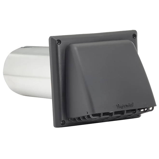 Preferred vent hood with removable protection to keep small animals from entering. Fitted with a 4″ aluminum pipe. Made from UV resistant paintable plastic.