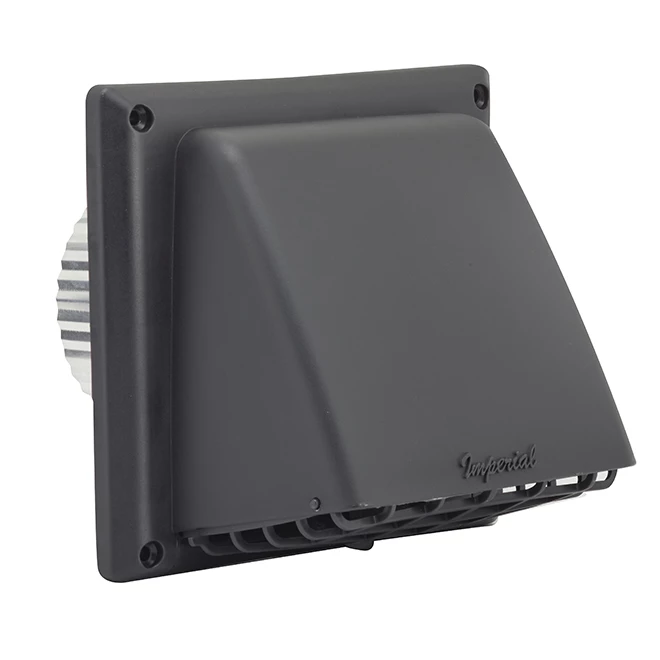 Preferred vent cap with removable protection to keep small animals from entering. The cap is fitted with a wide mouth to resist gusts and an air damper. It is also fitted with an hinged access guard to easily clean it. Equipped with a 3″ crimped mounting pipe to be connected to a 4″ pipe. Perfect for dryers and bath fans. Made from UV resistant paintable plastic.