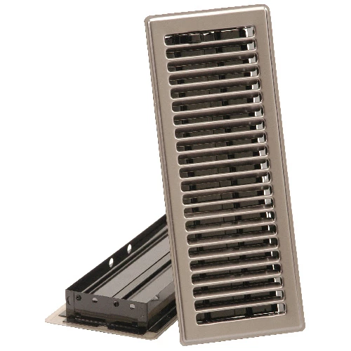 Floor register, the base is made with steel, it needs 2 1/4″ deep when damper is open and 1 1/4″ when damper is close. Top plate have 1″ more then dimensions for holding the register. Pewter color. Dimensions: 4×12″