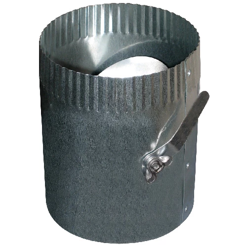 The Imperial galvanised volume damper with 4″ diameter sleeve, approximately 6″ long, is used to control the air flow into the central furnace system.